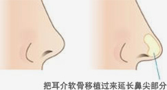 另外,因鼻尖向上而鼻孔有点显眼的时候,则可以通过将软骨组织移植到鼻尖的方法来解决。
