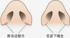 先在鼻孔的内部切开一个小的缺口,再把线穿成环形系过来,然后把鼻翼根部的宽度变小,这样的方法是最合适的。